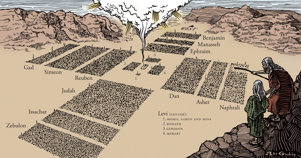 Ao retirar o povo do Egito, Deus estabelece e orienta Moisés para construir a Tenda da Congregação (Vayikra [Levítico] 8;3), ou Tenda do Encontro, de maneira em que, Doze Tribos se estabelecessem em torno do Tabernáculo e de forma significativa; quais deveriam ficar a Leste, quais a Oeste, ao Sul e ao Norte B’midbar [Números] cap. 2.